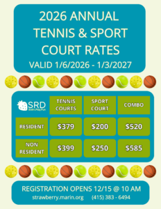 SRD sells memberships for recreational play, ONLY. Rental agreements and insurance are required for teaching lessons (email admin@strawberryrec.org for information). Matches, clinics, or other use of the courts is on a rental basis. Please email admin@strawberryrec.org for more information.